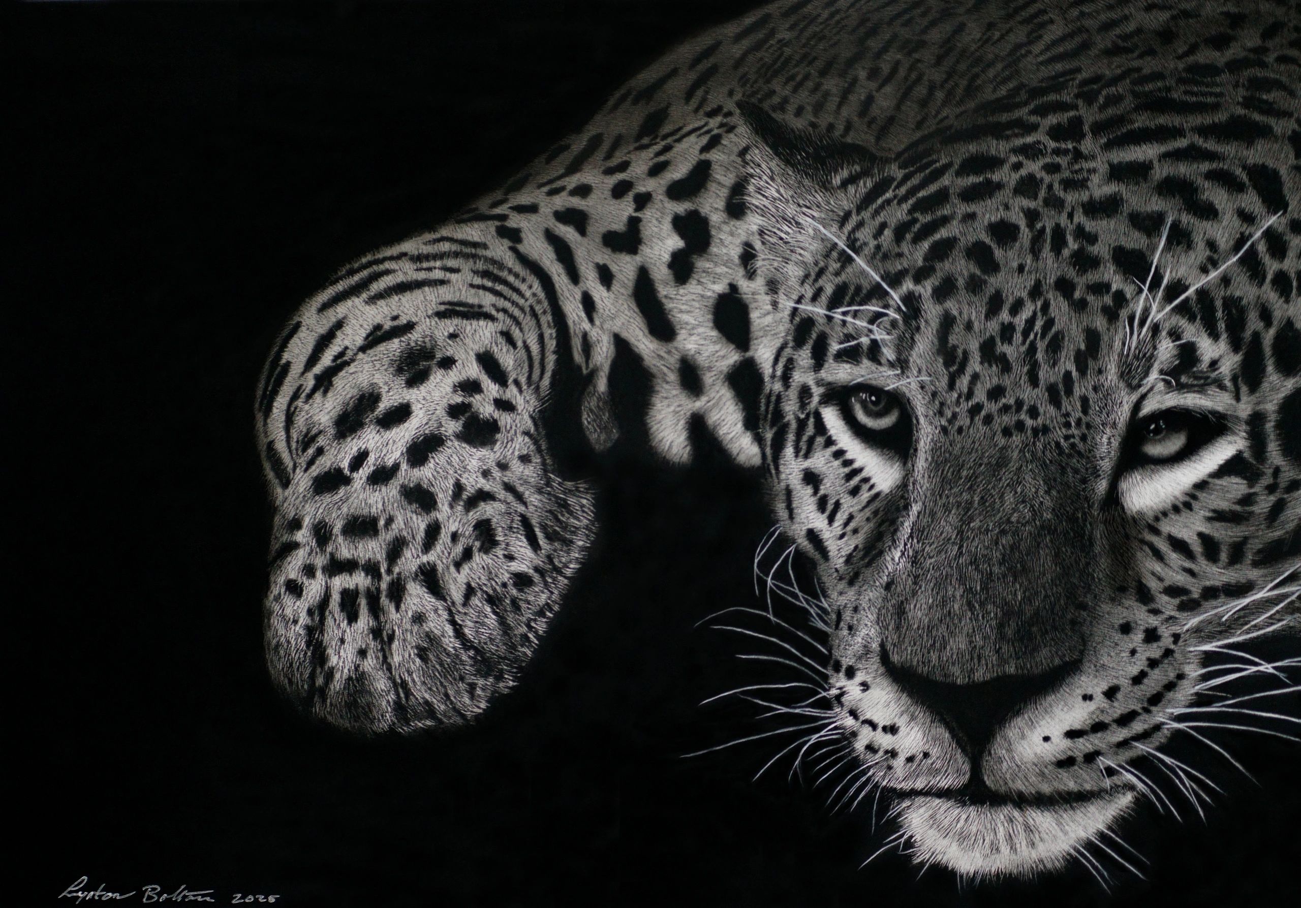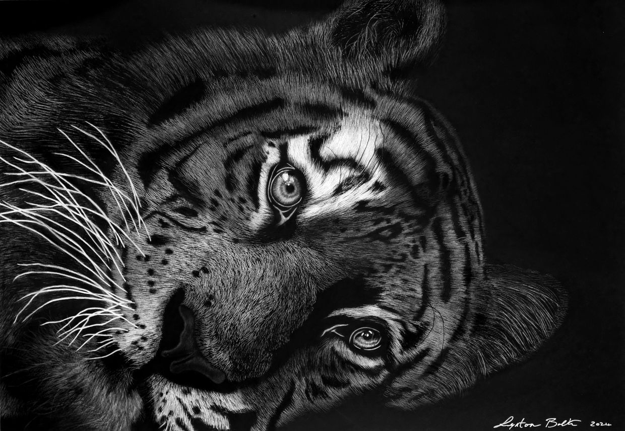 Lynton Bolton is an artist based in the city of Gloucester UK. Stemming from a background in both professional photography and graphic design, Lynton combines his talents in both crafts to create exceptional photorealistic charcoal drawings of nature and wildlife. His artistic process relies not just on his natural skill and talent, but also on his empathy and emotional connection to his artwork. His intricate pieces bear witness to an intimate respect of nature, but also an appreciation that has been enhanced by a lifetime of travelling and photographing in far flung ecosystems.